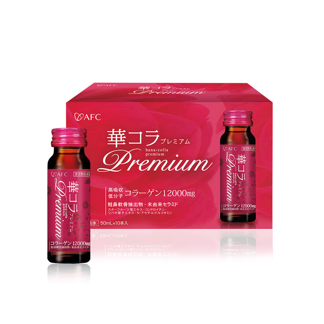HANAMAI專利膠原蛋白、米胚芽萃取(含神經醯胺)、鮭魚鼻頭軟骨(含蛋白聚糖)、維生素C、維生素E、山茶花籽萃取、楊桃葉萃取、維生素B1、B2、B6