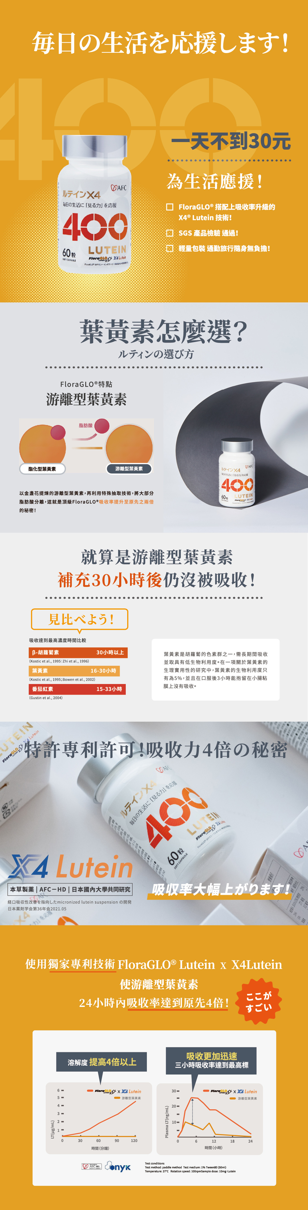 ▌ 美國KEMIN葉黃素大廠FloraGLO與X4Lutein獨家超吸收技術,吸收性向上