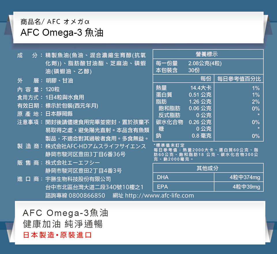* Omega-3中的優異精華DHA&EPA加上芝麻素,增加全面營養吸收率